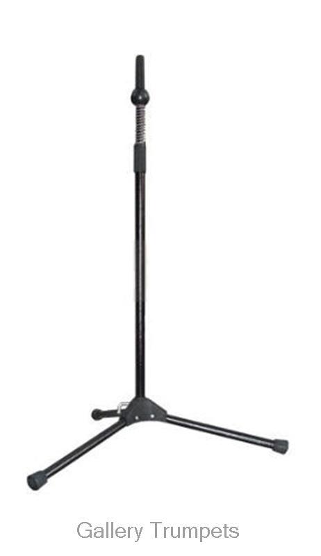 Regulable en altura con sistema único de suspensión también regulable para ajustar a cualquier tamaño de campana y especialmente diseñado para evitar abolladuras o golpes en el instrumento.